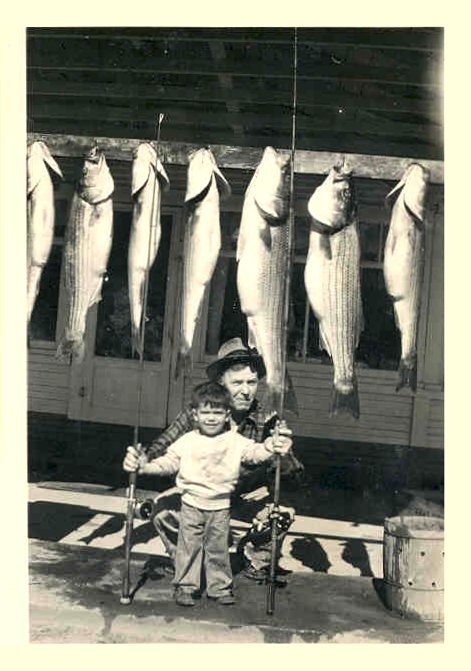 The fish are recognizable as striped bass from the nearby Umpqua River