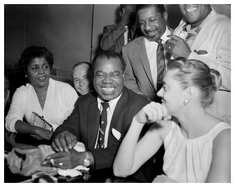 left to right:Lucille and Louis Armstrong with Erroll Garner (standing) at the Charles Hotel, Washington D.C. c. 1959Photograph courtesy of Harold Hopkins© 2003 Harold Hopkins Collection