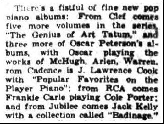 Prof. Alan Wallace sends details of the following J. Lawrence Cook music rolls, which appeared on a 1959 Mercury LP record. |
