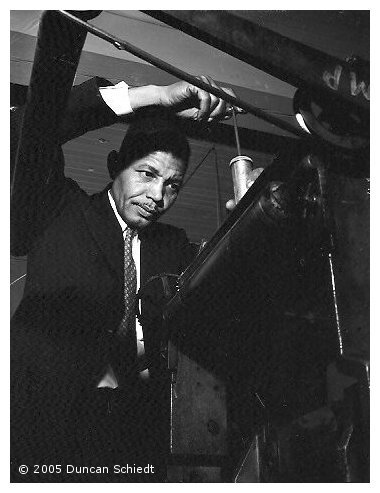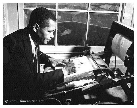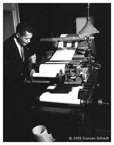 Duncan Schiedt, renowned jazz photographer, author and historian sends the following breathtaking black-and-white photographs, which he took of J. Lawrence Cook and others at the Imperial Industrial Co., New York in 1949. Duncan had gone along to ask J. Lawrence Cook about his memories of ‘Fats’ Waller, whose biography Ain’t Misbehavin’ he was then researching. |