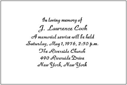 Prof. Alan Wallace sends the following obituary notice for J. Lawrence Cook from The New York Times, dated Monday, 5th April 1976. |