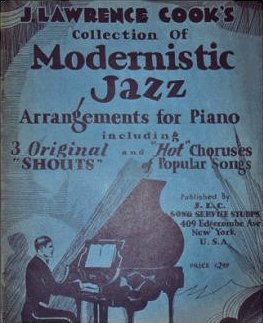 Dr. Jean Lawrence Cook sends details of this interesting piano folio titled: J. LAWRENCE COOK’S Collection of Modernistic Jazz Arrangements for Piano, which was published in 1930. |